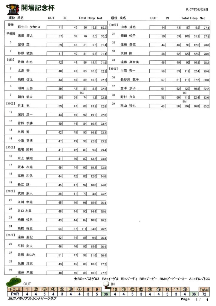 2025年9月21日に 開場記念杯が開催されましたので、成績を掲載いたします。