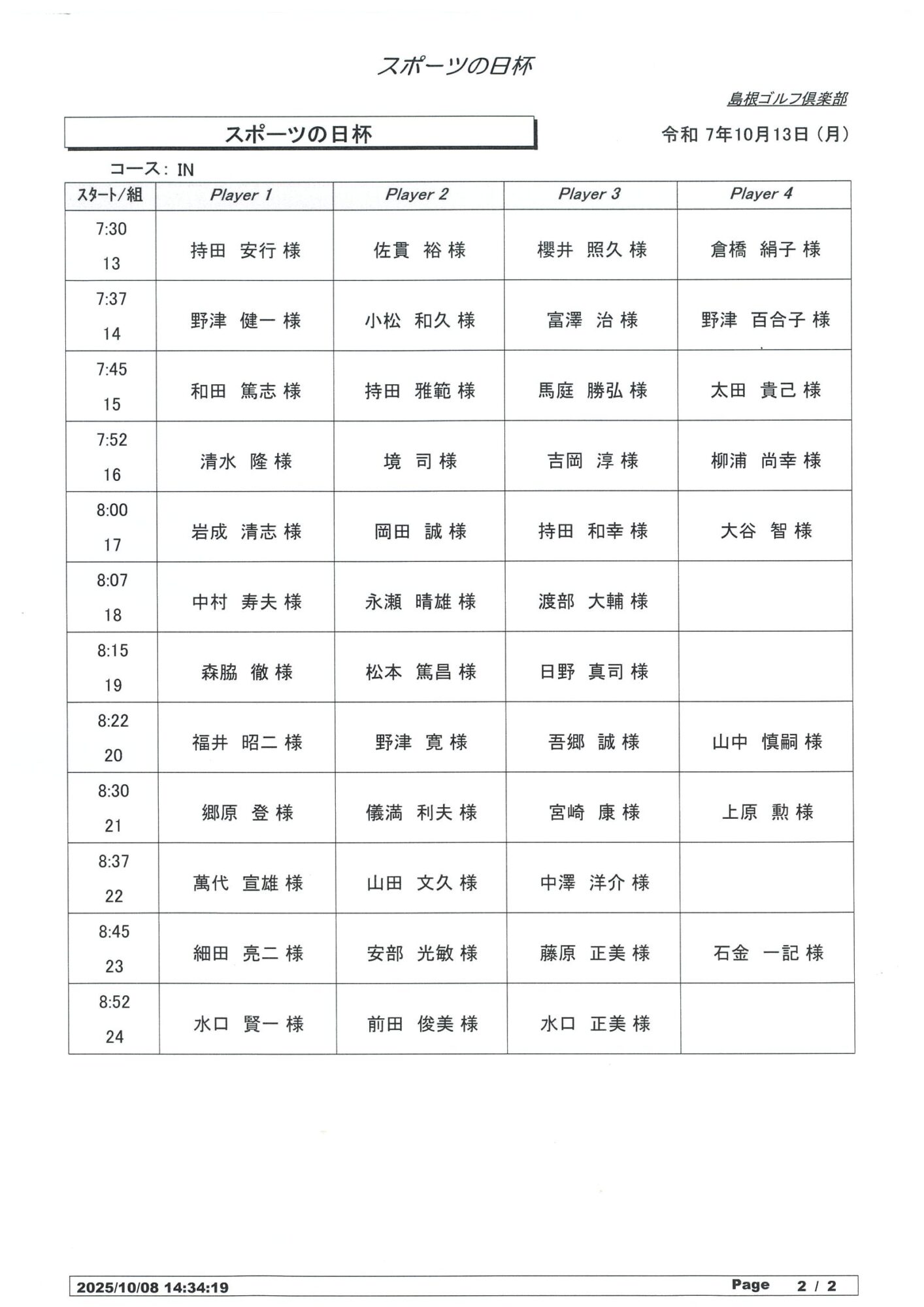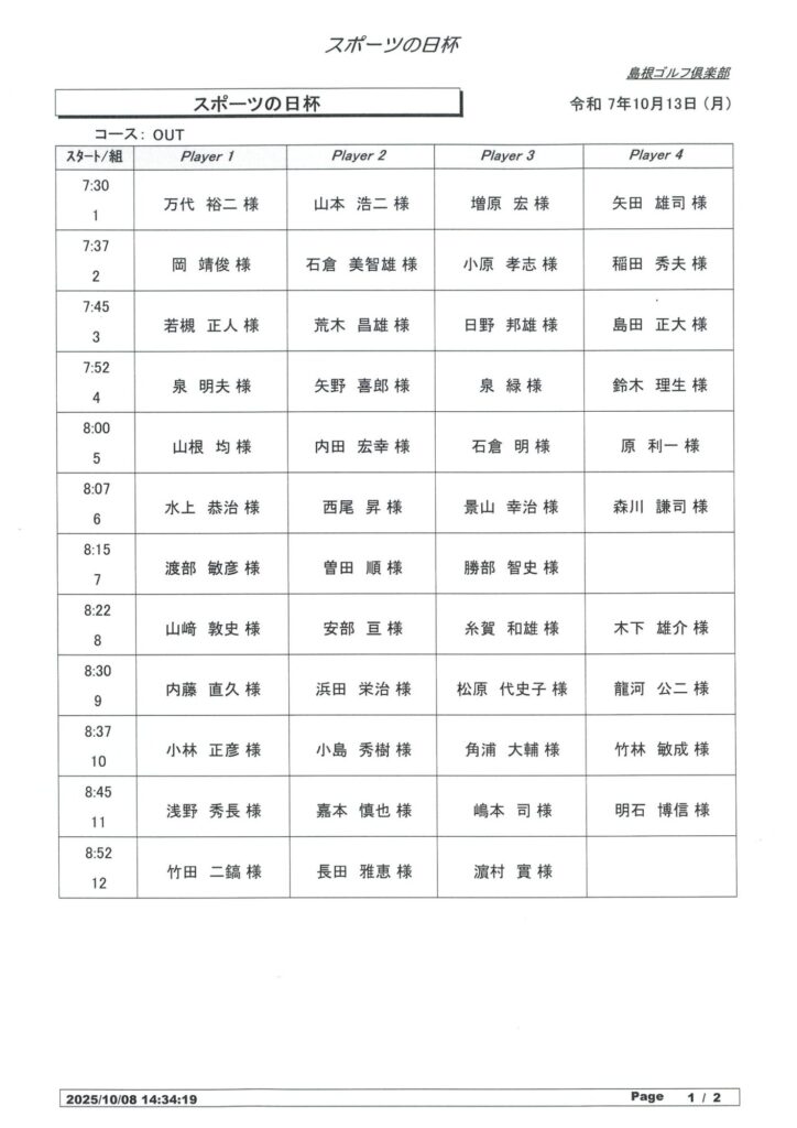 10月13日 スポーツの日杯 組合せ