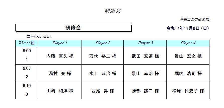 島根GC研修会 2025年11月9日(日)組合せのご案内