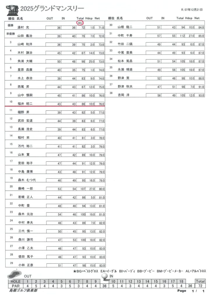 2025年 グランドマンスリー 結果