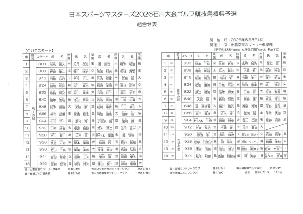 日本スポーツマスターズ2026石川大会ゴルフ競技島根県予選組合せ