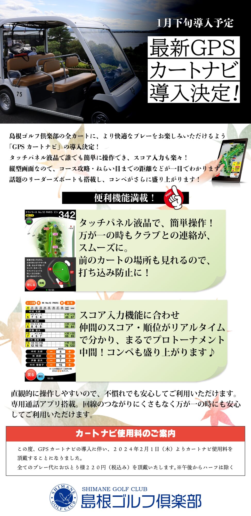 カートフィーとは別に、220円/人をGPSカートナビ使用料として頂戴いたします。